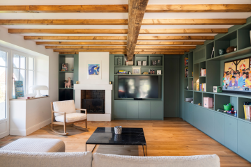 À Bayonne, Brotherwood a réalisé une bibliothèque d’angle sur mesure, conçue pour optimiser l’espace tout en affirmant une présence élégante dans la pièce. L’ensemble associe la chaleur du chêne au raffinement d’un MDF laqué, créant un dialogue subtil entre naturel et contemporain. Pensée dans ses moindres détails, la bibliothèque intègre un espace destiné à accueillir un téléviseur, ingénieusement dissimulé derrière une porte coulissante en faux claire-voie de chêne. Ce jeu de lames apporte rythme et légèreté à la façade, tout en renforçant la fluidité d’utilisation. Sur un autre pan de mur, l’habillage discret d’un poêle à bois s’harmonise avec l’ensemble, offrant une continuité visuelle et renforçant la cohérence de l’aménagement. Plus qu’un simple mobilier, cette réalisation illustre la capacité de Brotherwood à conjuguer esthétisme et usage. La précision des finitions, l’équilibre des volumes et la sélection des matériaux témoignent d’un savoir-faire attentif, au service de lieux de vie à la fois pratiques et raffinés. Cette bibliothèque devient ainsi un véritable élément d’architecture intérieure, à la croisée de la fonctionnalité et du confort visuel.