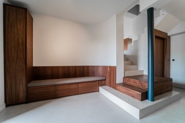 Agencement entrée Design : Nicolas Guittard Architecture et Coordination : Atelier Delettre Architecture Photos : A.Monnet Photo Agencement d’une entrée avec banquette, habillage de marches et placards en noyer avec une porte dissimulée Agencement d’une entrée avec banquette, habillage de marches et placards en noyer avec une porte dissimulée  Brotherwood, Lire la suite…