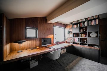 Design : Nicolas Guittard Architecture et Coordination : Atelier Delettre Architecture Photos : A.Monnet Photo Agencement d’un bureau avec bibliothèque et bureau en noyer et Valchromat noir  Agencement d’un bureau avec bibliothèque et bureau en noyer et Valchromat noir  Brotherwood, entreprise de menuiserie à Anglet, réalise des projets d’agencement et Lire la suite…