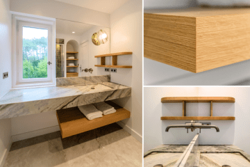 Salle de bain noyer Design : Nicolas Guittard Architecture et Coordination : Atelier Delettre Architecture Photos : A.Monnet Photo Meuble de salle de bain, miroir et étagères en noyer Meuble de salle de bain, miroir et étagères en noyer Brotherwood, entreprise de menuiserie à Anglet, réalise des projets d’agencement et Lire la suite…