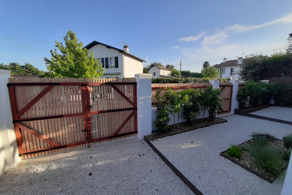 Création d’un portail, portillon et pallisade en pin douglas. Clotûre à claire-voie.