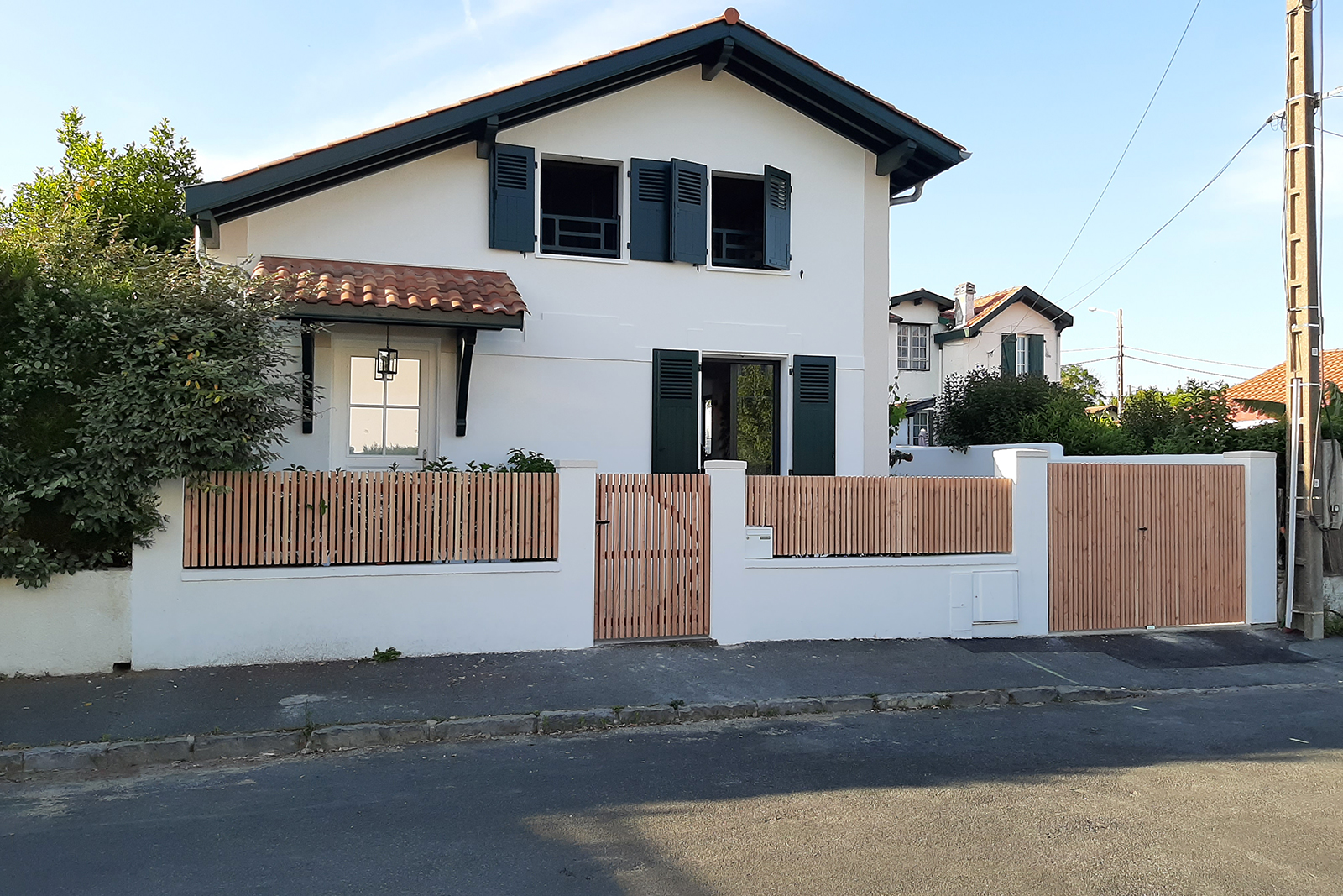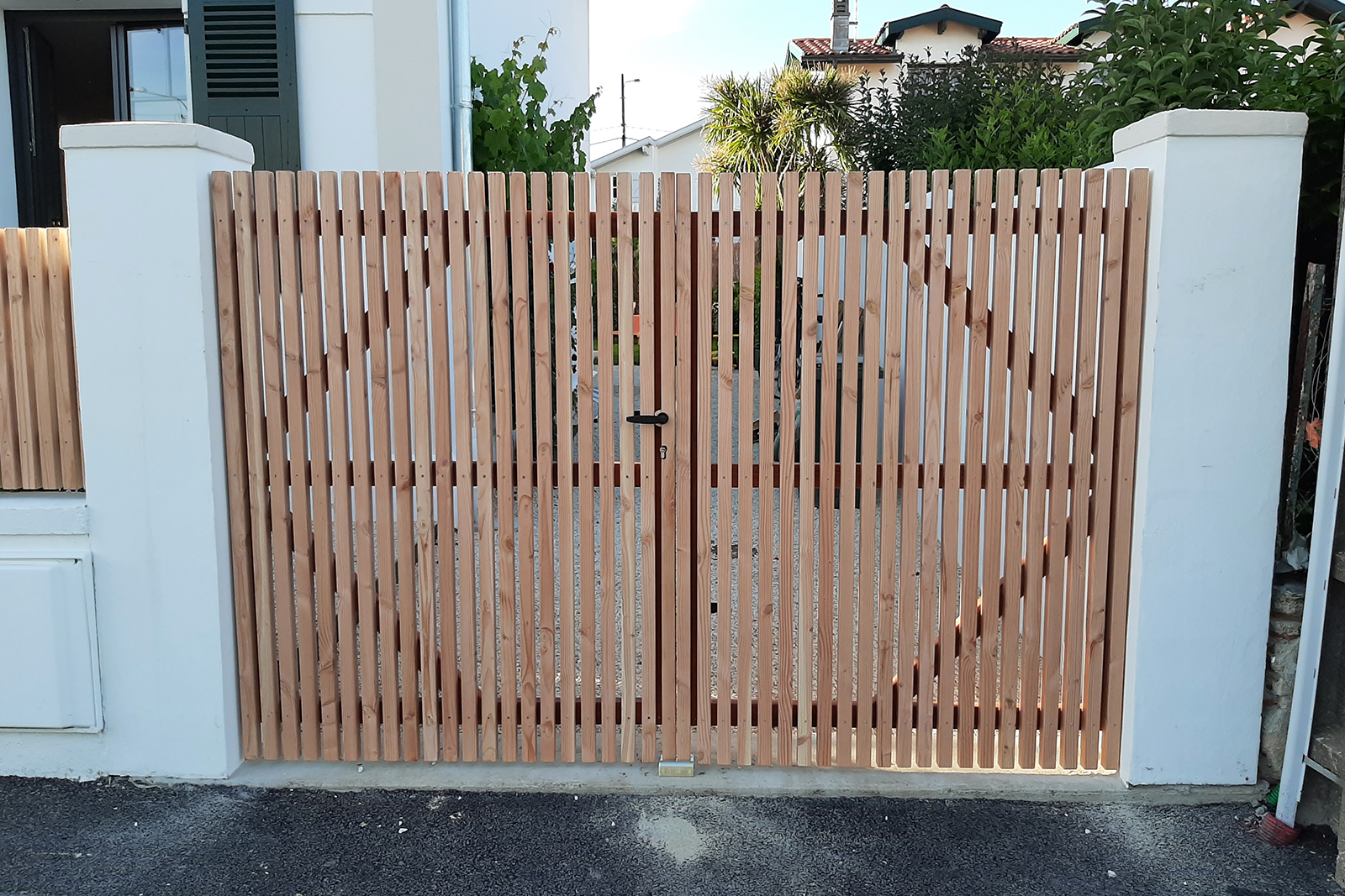 Création d’un portail, portillon et pallisade en pin douglas. Clotûre à claire-voie.