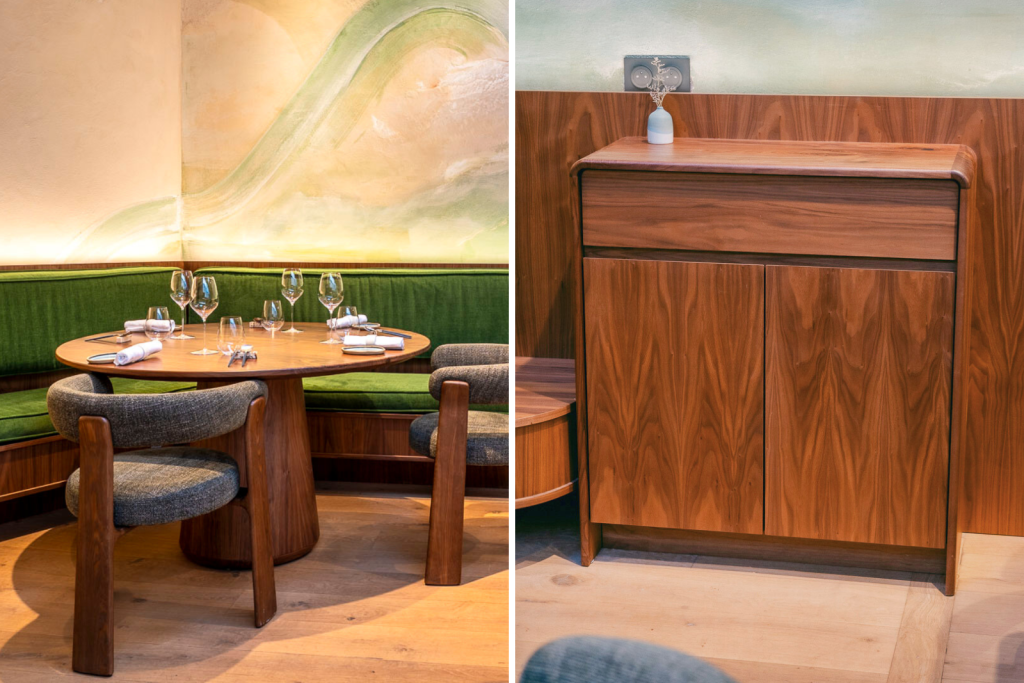 Nous fabriquons du mobilier sur mesure pour restaurants, bars et cafés, en tenant compte des besoins spécifiques de chaque espace : contraintes techniques, circulation des clients, ergonomie de travail, ambiance recherchée et direction artistique définie par le propriétaire ou l’architecte.
