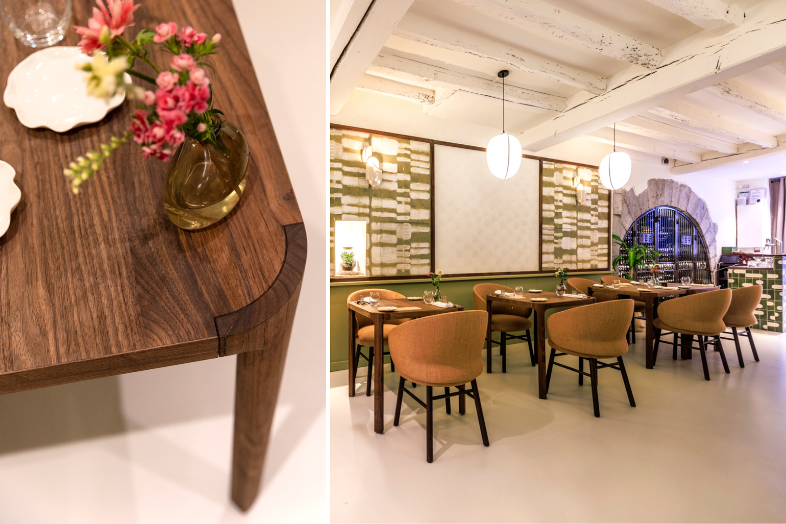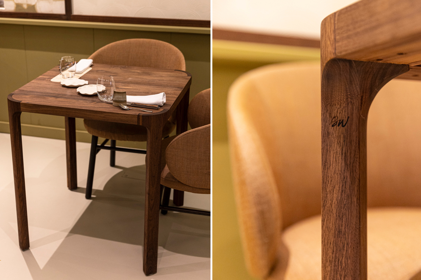 En somme, cette table à manger sur-mesure est le résultat d’un mariage parfait entre l’artisanat traditionnel et le design contemporain. Elle constitue un élément central de l’expérience gastronomique du restaurant, offrant non seulement un espace accueillant pour les convives, mais aussi une œuvre d’art à part entière.